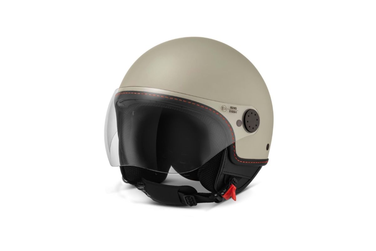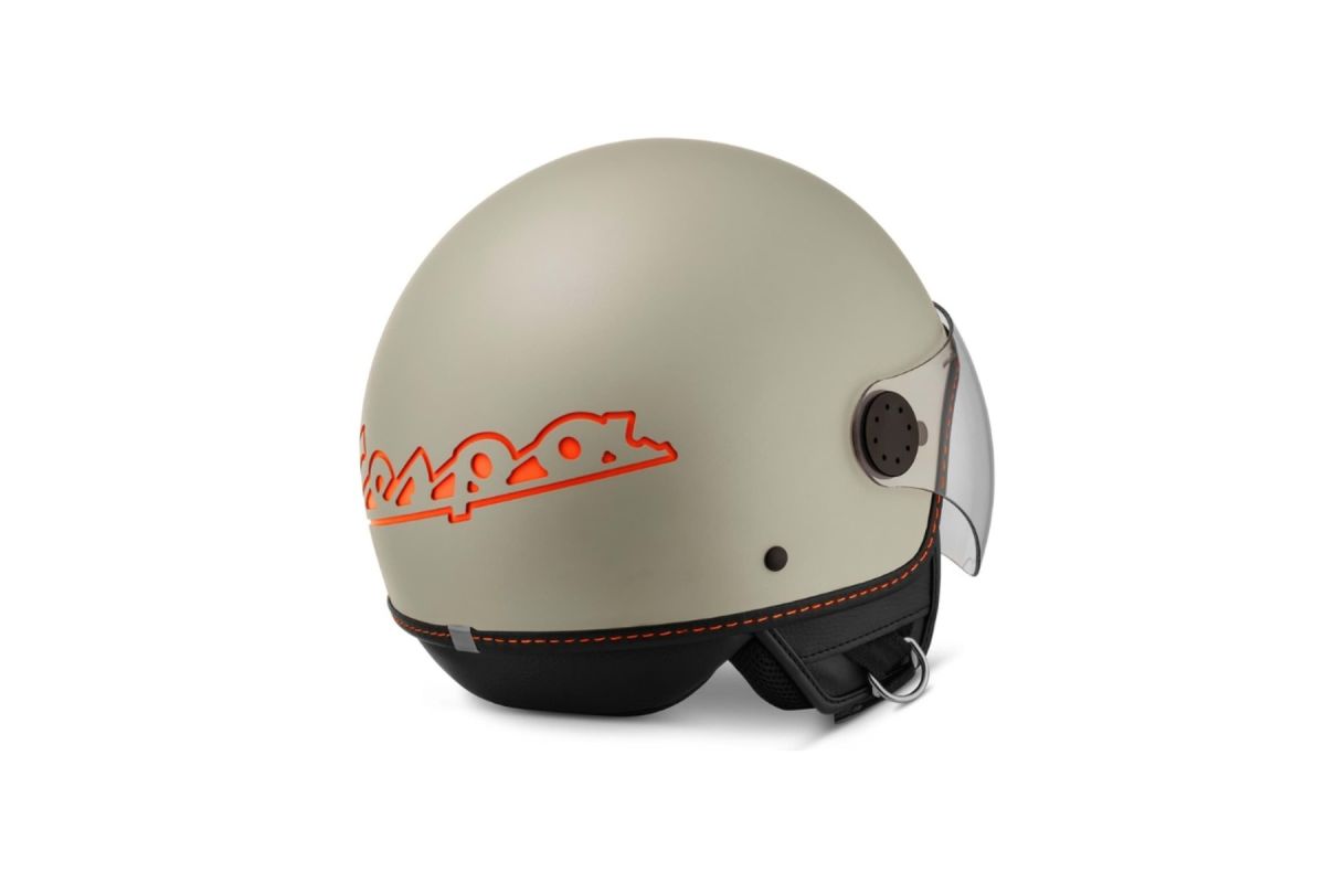 Ekskluzivna originalna kaciga demi-jet izrađena od ABS termoplastike od Vespe, s obrubom od umjetne kože.