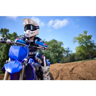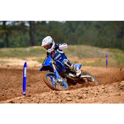 YZ85 takođe ima lagani aluminijumski zadnji okvir i aluminijumsku oscilirajuću viljušku, disk kočnice velikog prečnika i sistem usisa vazduha visoke efikasnosti – baš kao i veći YZ125. Kako bi vozač imao maksimalnu kontrolu, tu su ravno sjedište, vitka karoserija i ergonomski rezervoar za gorivo. A sa ažuriranom Icon Blue bojom i novom grafikom koje upotpunjuju izgled, YZ85 je spreman da vas pogura na sljedeći nivo.